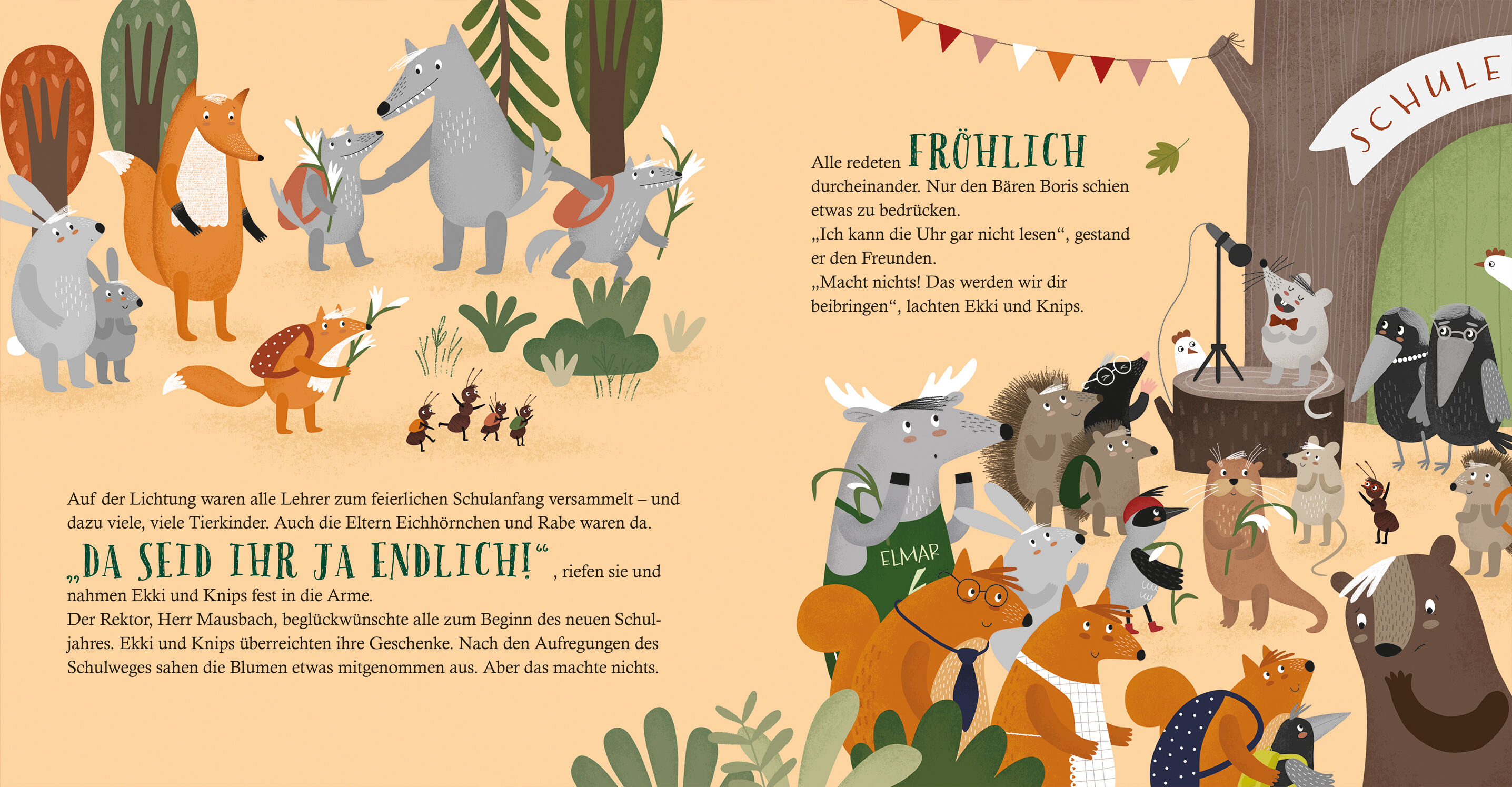 Eine witzige Geschichte zum Vorlesen, die die Vorfreude auf die Schule weckt und zeigt, dass Lernen Spaß macht. Das kleine Eichhörnchen Ekki und sein bester Freund, der kleine Rabe Knips, sind ganz aufgeregt: Endlich geht es in die Schule! Doch oh weh Schon ac...