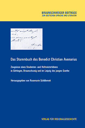 Das Stammbuch des Benedict Christian Avenarius mit Eintragungen aus Braunschweig, Celle und Leipzig aus den sechziger Jahren des 18. Jahrhunderts läßt ein Stück Literatur- und Kulturgeschichte vor dem Blick des Lesers entstehen. Aus dem Kreis des Braunschweige...