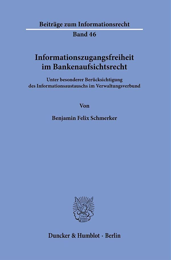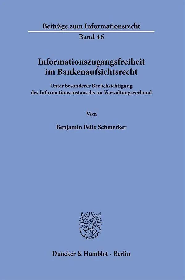 »Freedome of Information in Banking Supervision law. Under Special Consideration of the Exchance of Information within the Administrative Cooperation Network«: In banking supervision law the right of every person to access administrative information meets a hi...