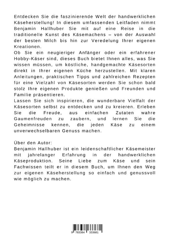 Entdecken Sie die faszinierende Welt der handwerklichen Käseherstellung! In diesem umfassenden Leitfaden nimmt Benjamin Hallhuber Sie mit auf eine Reise in die traditionelle Kunst des Käsemachens von der Auswahl der besten Milch bis hin zur Veredelung Ihrer ei...
