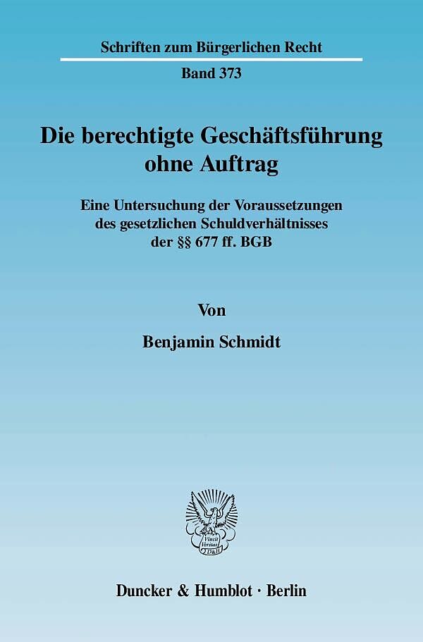 Benjamin Schmidt zielt in der vorliegenden Arbeit auf eine Präzisierung der Voraussetzungen ab, unter denen Ansprüche aus Geschäftsführung ohne Auftrag (GoA) bestehen. Dazu knüpft er an den engen Zusammenhang der §§ 677 und 683 BGB an. Diesen Regelungen ist da...