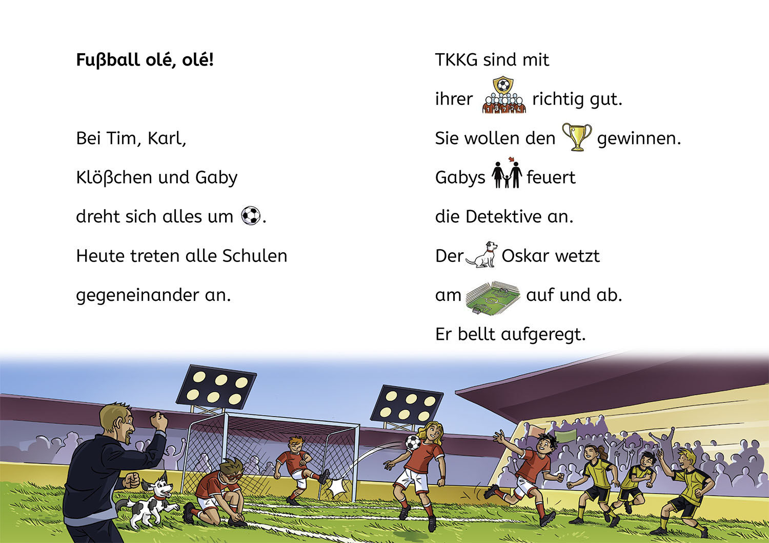 Auf dem Fußballturnier stimmt etwas nicht. Ein großer Diebstahl? TKKG ermitteln gemeinsam in einem spannenden Fall. Eine Geschichte mit vielen Illustrationen und großer Schrift. Ein interaktiver Lese- und Ratespaß mit Bildern, die Hauptwörter ersetzen. Für Kin...