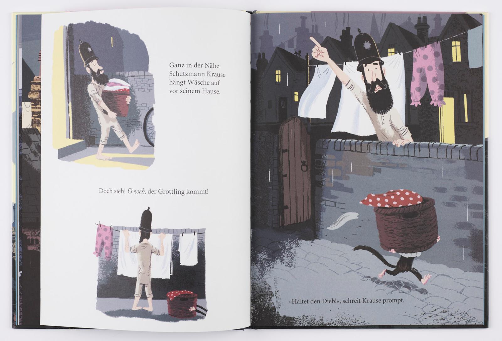 Rubi kann nicht schlafen. Irgendetwas knackt. Sam spürt einen kalten Lufthauch. Und Schutzmann Krause vermisst sein gepunktetes Bettlaken. Ein geheimnisvolles Wesen spukt umher. Und immer mehr Dinge verschwinden. Was steckt dahinter? Ob es wohl der Grottling ...