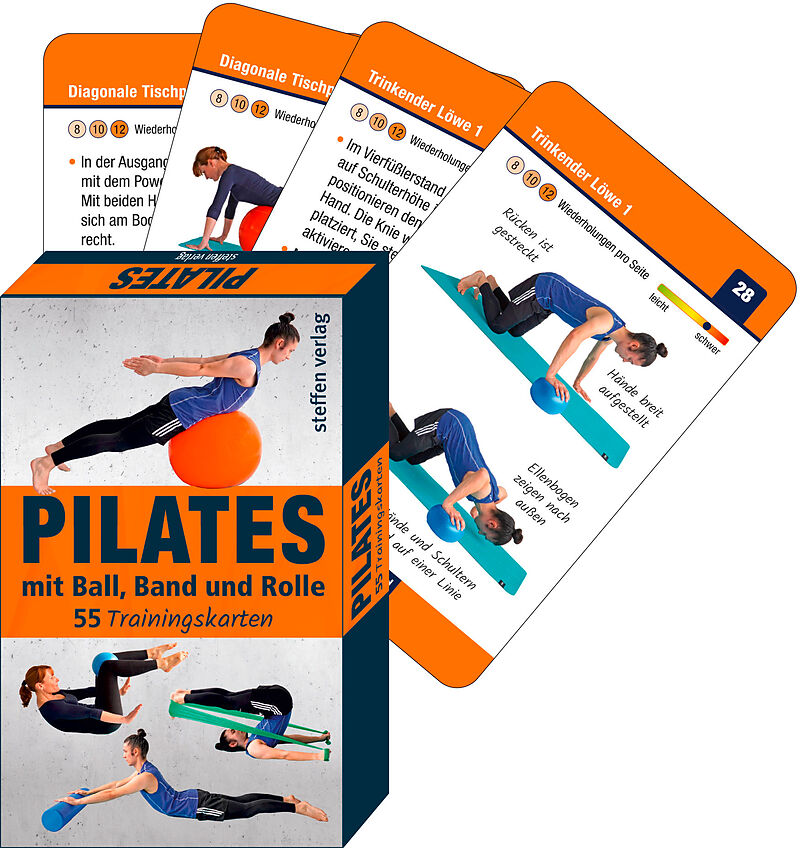 Effektiver und erfolgreicher trainieren mit den Trainingskarten Pilates mit Ball, Band und Rolle Pilates fördert eine gesunde Körperhaltung, stärkt die Tiefenmuskulatur und hilft bei der Stressbewältigung. Pilates-Übungen mit Geräten wie Ball, Band und Rolle s...