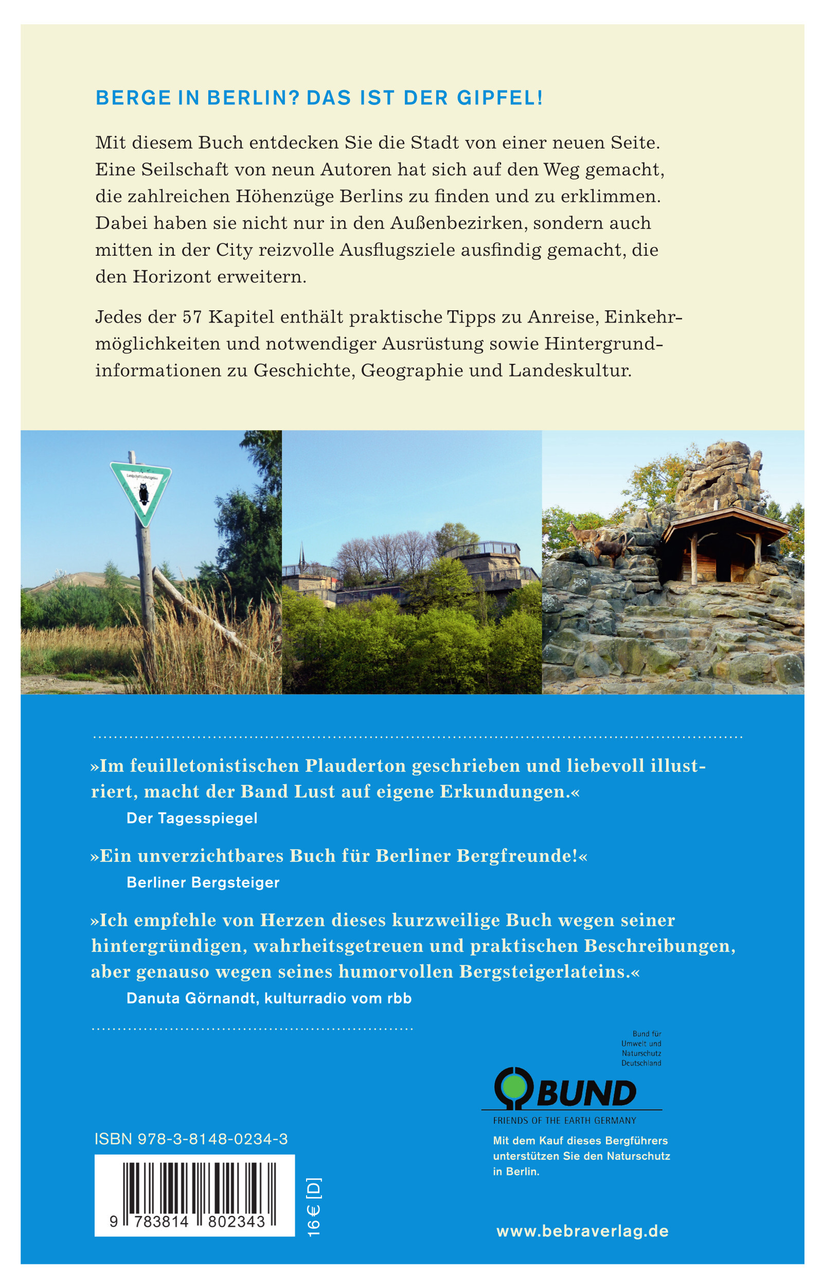 Mit diesem Buch entdecken Sie die Stadt von einer neuen Seite. Eine Seilschaft von neun Autoren hat sich auf den Weg gemacht, die zahlreichen Höhenzüge Berlins zu lokalisieren und zu erklimmen. Dabei haben sie nicht nur in den Außenbezirken, sondern auch mitte...