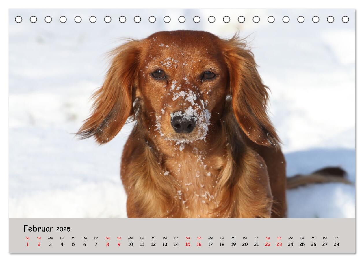 Wer ein richtiger Dackelliebhaber ist, wird sich an diesem Kalender sehr erfreuen. 12 schöne Dackelbilder zu den unterschiedlichsten Jahreszeiten, vom Welpen bis zum ausgewachsenen Dackel, in viele verschiedenen Lokalitäten.