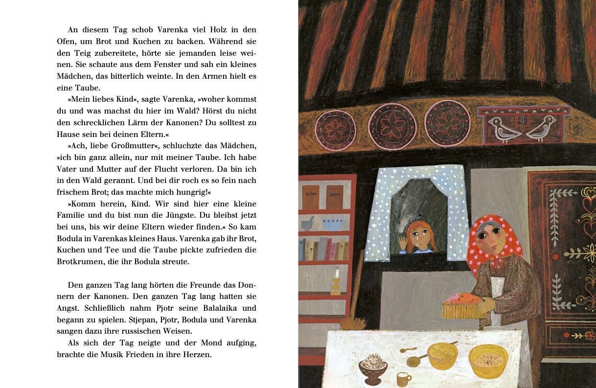 Die Witwe Varenka lebt in einem von Krieg bedrohten Teil Russlands. Sie weigert sich aber, ihr Zuhause zu verlassen und bietet anderen Schutzsuchenden Zuflucht. Ihr Gebet, dass Gott eine Mauer um ihr Haus bauen solle wird erhört, es schneit und schneit, bis da...