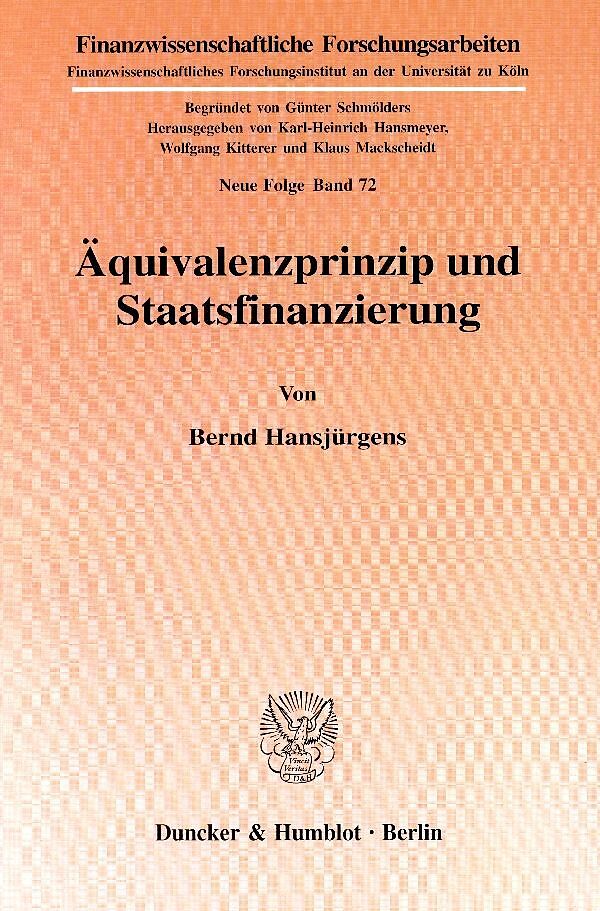 Das Äquivalenzprinzip, auch Nutzen-, Vorteils- oder Interessenprinzip (benefit principle) genannt, besagt, daß die Staatsbürger gemäß dem erhaltenen Nutzen, dem realisierten Vorteil oder dem erreichten Grad an Interessenbefriedigung zur Finanzierung der staatl...