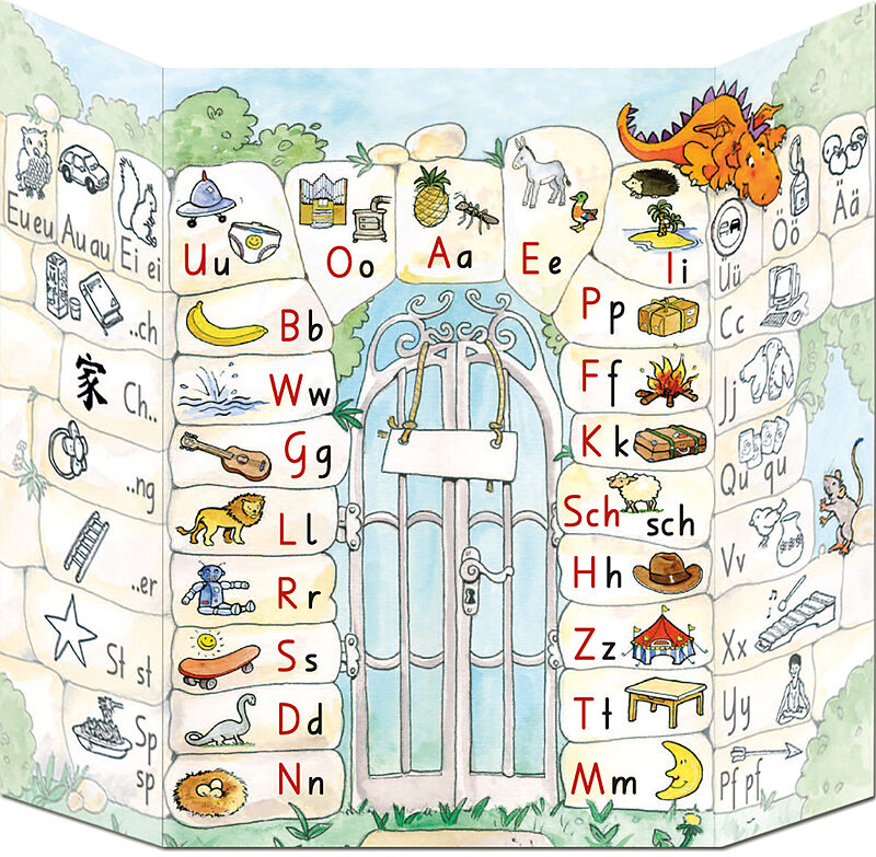 Mit Hilfe der Buchstabentabelle schreiben Kinder schon nach kurzer Zeit eigene Wörter und Sätze. Dabei arbeitet jedes Kind auf seinem Niveau. In der Anfangsphase können die beiden äusseren Teile weggeklappt werden, sodass nur diejenigen Laute erscheinen, die ...