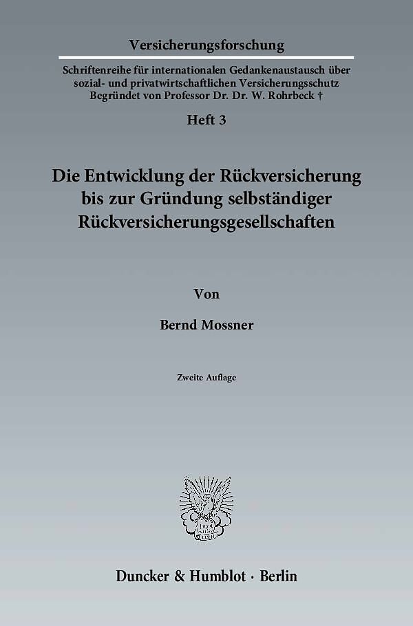 Über die Geschichte der See-, Feuer- und Lebensversicherung sind zahlreiche Arbeiten geschrieben worden. Nur die Entwicklung der Rückversicherung wurde bisher in der Literatur stiefmütterlich behandelt. Die wenigen Autoren, die sich mit der Geschichte der Rück...