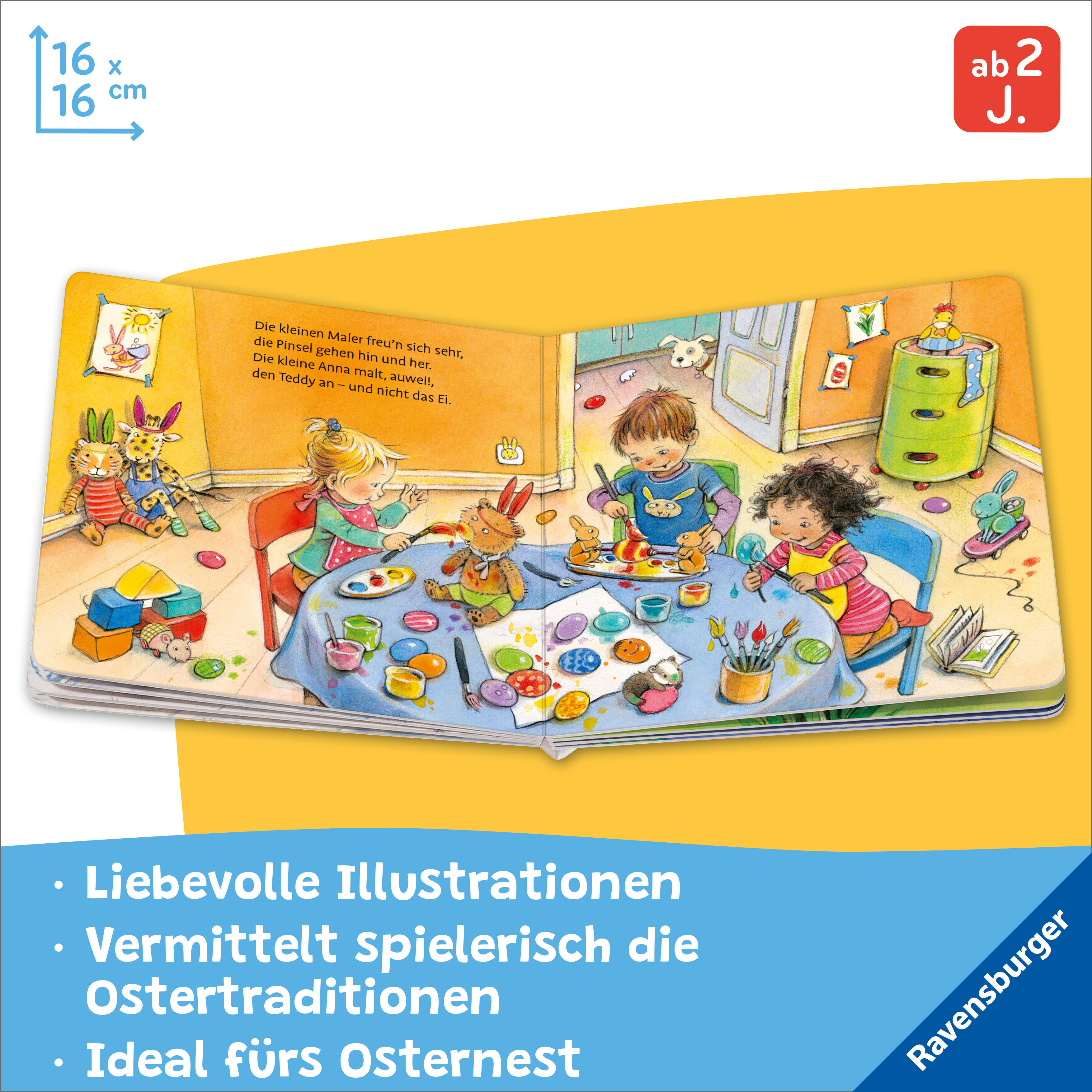 Bald ist Ostern und beim Osterhasen laufen die Vorbereitungen schon auf Hochtouren. Er holt Eier bei den Hühnern, bemalt sie mit seinen Farben und versteckt sie am frühen Ostermorgen in den Gärten. Auch bei den Kindern zuhause werden Ostereier bemalt und Oster...