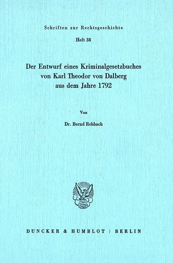 Der Entwurf eines Kriminalgesetzbuches von Karl Theodor von Dalberg aus dem Jahre 1792.