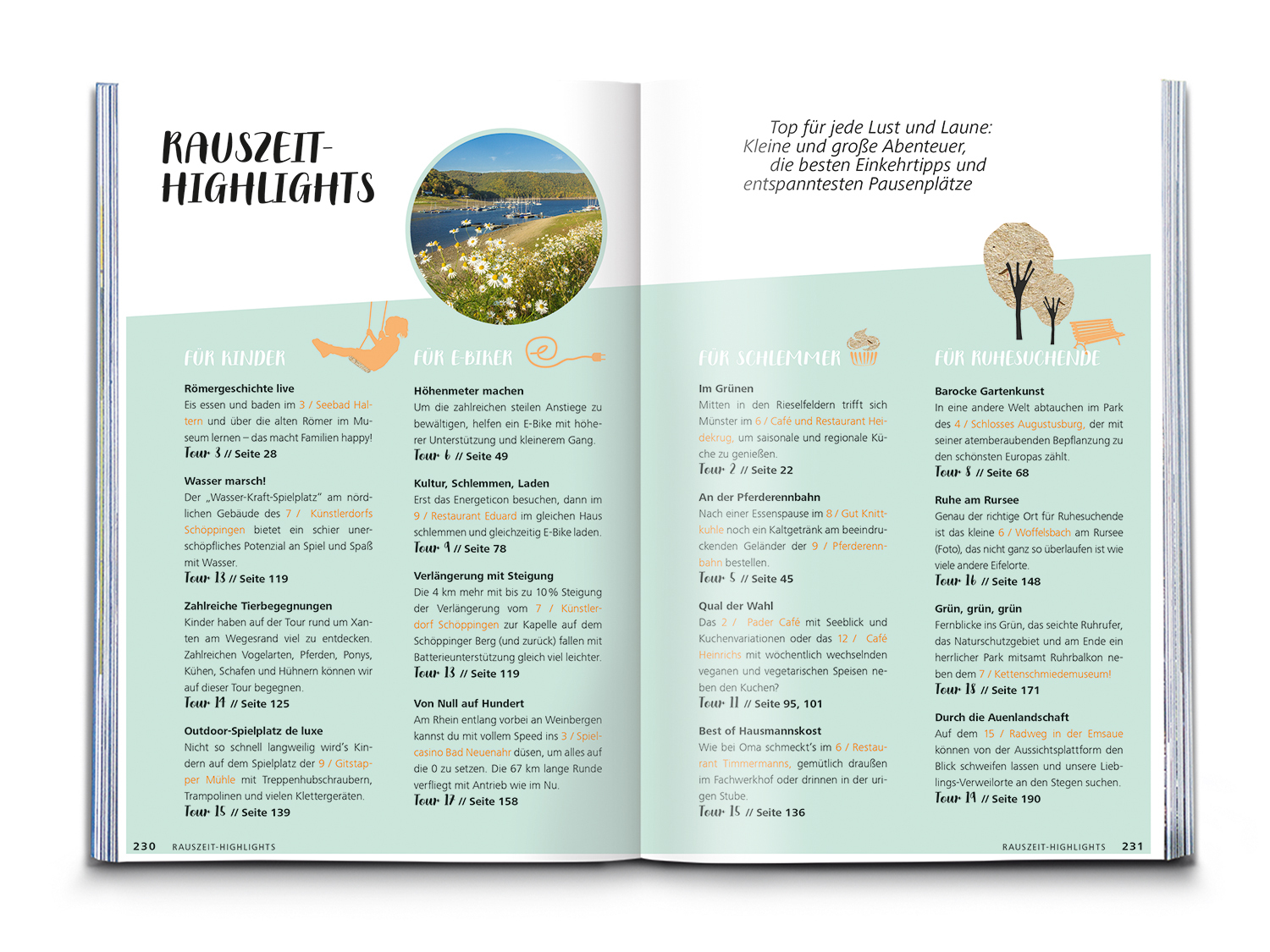 21einhalb Radtouren, die du so nie gemacht hättest! Tagestouren, die jeder schafft, Feierabendrunden zum Runterschalten und Wochenendausflüge ins Umland hier ist für alle die passende Tour dabei. Du radelst zum vielleicht schönsten Schloss in Nordrhein-Westfa...