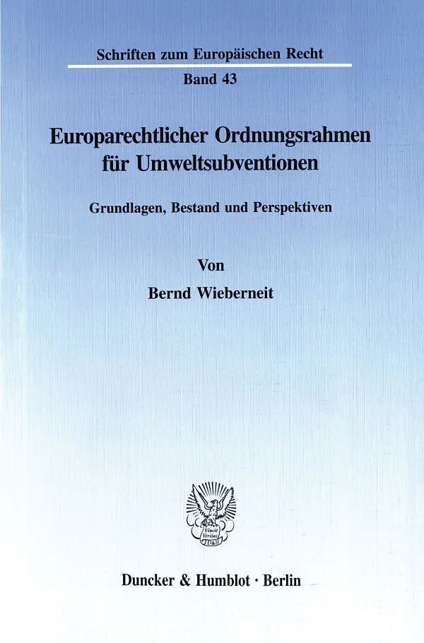 Inhaltsübersicht: Erster Teil: Ausgangs- und Eingangsfragen: 1. Kapitel: Subventionen als Ausdruck gemein- und gruppenlastorientierter Umweltpolitik - 2. Kapitel: Subventionen in Sachen Umweltschutz - Elemente einer Bestandsaufnahme, Schwerpunkte, Besonderheiten - Zweiter Teil: Europarechtlicher Ordnungsrahmen: 3. Kapitel: Umweltsubventionen und europäische »Wirtschaftsverfassung« - 4. Kapitel: Der europarechtliche Stellenwert des Umweltschutzes im Rahmen seiner vier Ebenen: Europaverfassungsrecht, Aktionsprogramme, Kostenzurechnungsempfehlung, sekundäres Europarecht - 5. Kapitel: Art. 92 EGV als zentrale Nahtstelle zwischen europäischer Beihilfenaufsicht und Umweltsubventionen der Mitgliedstaaten - 6. Kapitel: Ordnungsrahmen für europäische Umweltsubventionen - 7. Kapitel: Zusammenfassung und Ausblick - Literaturverzeichnis - Sachregister