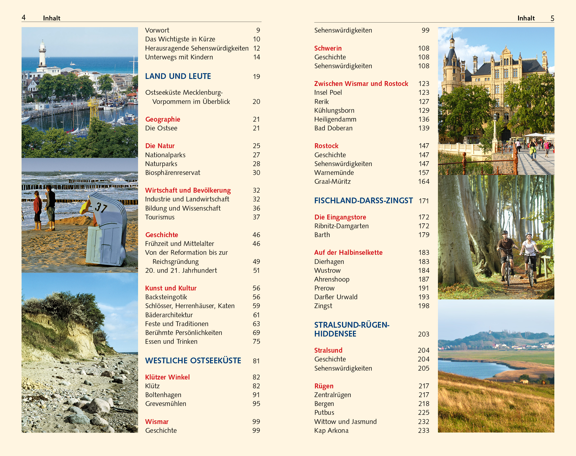 INHALTSVERZEICHNIS Vorwort 9 Das Wichtigste in Kürze 10 Herausragende Sehenswürdigkeiten 12 Unterwegs mit Kindern 14 LAND UND LEUTE 19 Ostseeküste Mecklenburg-Vorpommern im Überblick 20 Geographie 21 Die Ostsee 21 Die Natur 25 Nationalparks 27 Naturparks 28 Biosphärenreservat 30 Wirtschaft und Bevölkerung 32 Industrie und Landwirtschaft 32 Bildung und Wissenschaft 36 Tourismus 37 Geschichte 46 Frühzeit und Mittelalter 46 Von der Reformation bis zur Reichsgründung 49 20. und 21. Jahrhundert 51 Kunst und Kultur 56 Backsteingotik 56 Schlösser, Herrenhäuser, Katen 59 Bäderarchitektur 61 Feste und Traditionen 63 Berühmte Persönlichkeiten 69 Essen und Trinken 75 WESTLICHE OSTSEEKÜSTE 81 Klützer Winkel 82 Klütz 82 Boltenhagen 91 Grevesmühlen 95 Wismar 99 Geschichte 99 Sehenswürdigkeiten 99 Schwerin 108 Geschichte 108 Sehenswürdigkeiten 108 Zwischen Wismar und Rostock 123 Insel Poel 123 Rerik 127 Kühlungsborn 129 Heiligendamm 136 Bad Doberan 139 Rostock 147 Geschichte 147 Sehenswürdigkeiten 147 Warnemünde 157 Graal-Müritz 164 FISCHLAND-DARSS-ZINGST 171 Die Eingangstore 172 Ribnitz-Damgarten 172 Barth 179 Auf der Halbinselkette 183 Dierhagen 183 Wustr…