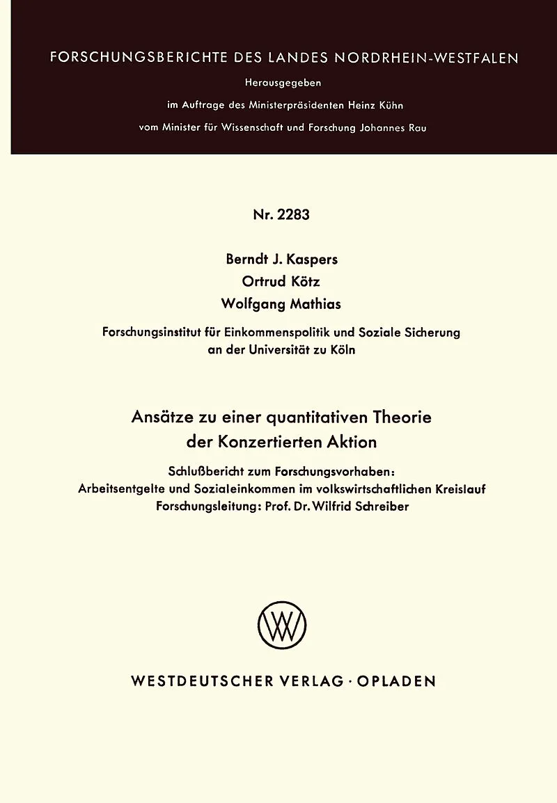 Der vorliegende Bericht wurde im Forschungsinstitut fur Ein kommenspolitik und Soziale Sicherung an der Universitat zu Keln (Direktoren: Prof. Dr. Wilfried Schreiber und Prof. Dr. Philipp Herder-Dorneich - Ruhr-Universitat Bochum) angefer tigt. Er ist der Schl...