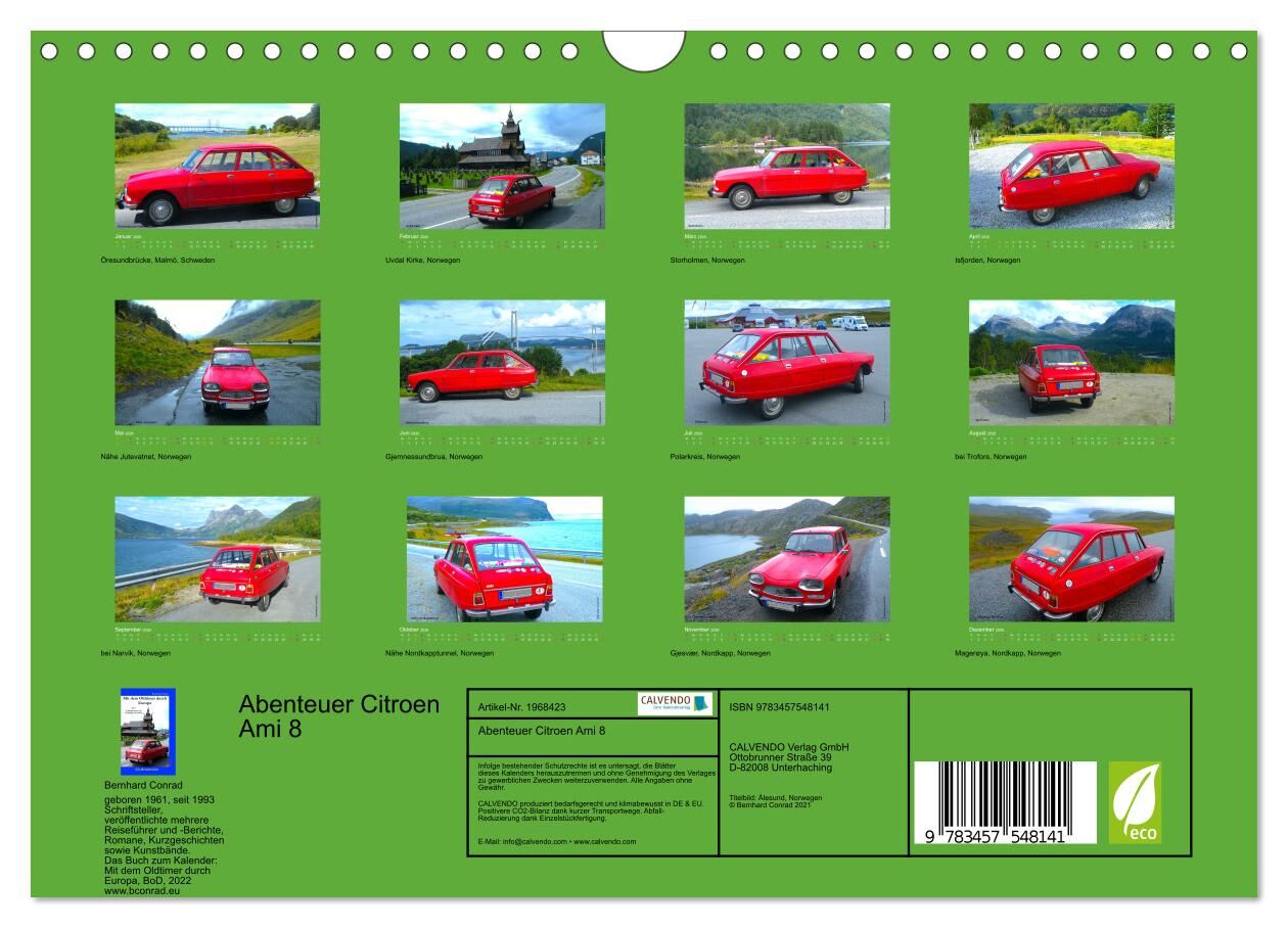 Abenteuer Citroen Ami 8 (Wandkalender 2026 DIN A4 quer), CALVENDO Monatskalender