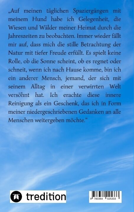 Der moderne Mensch lebt häufig getrennt von der Natur und gegen seine wahren Bedürfnisse. Meine täglichen Gedanken sollen den Leser dazu anregen, sich wieder mit dem Mensch-Sein zu befassen und Wege aufzeigen, um im Einklang mit der Natur zu sich selbst zu fin...