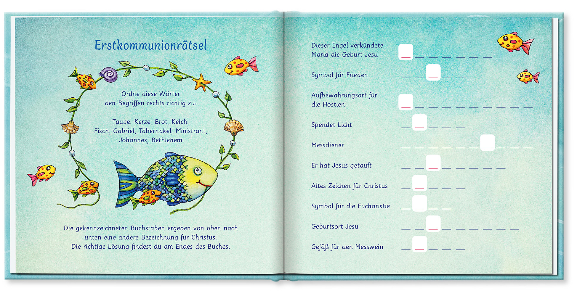 Das Wunschfisch-Geschenkbuch Wunderschöne und herzliche Glückwünsche überreichen Ein liebevoll gestaltetes Geschenkbuch für Kommunionkinder mit ausgewählten Texten, Gebeten und einem kleinen Rätsel und zahlreiche Seiten zum Eintragen und für Fotos. Ein schöne...