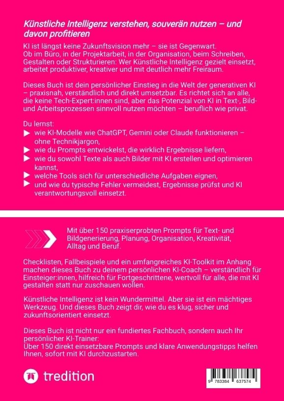 KI verstehen, anwenden, profitieren Praxiswissen, Prompts und Strategien für den erfolgreichen KI-Einsatz im Alltag und Beruf ist dein interaktiver Begleiter in die Welt der Künstlichen Intelligenz. Du lernst praxisnah, wie du KI-Tools wie ChatGPT und Co. gezi...