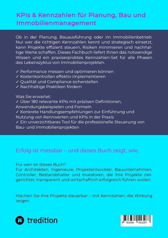 Dieses Buch bietet eine umfassende und praxisnahe Sammlung von über 180 KPIs und Kennzahlen für die Planung, Bauausführung und das Immobilienmanagement. Es zeigt, wie Kennzahlen strategisch eingesetzt werden können, um Bauprojekte effizienter zu steuern, Koste...