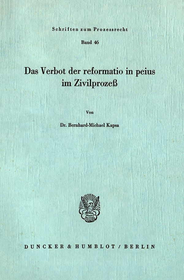 Das Verbot der reformatio in peius im Zivilprozeß.