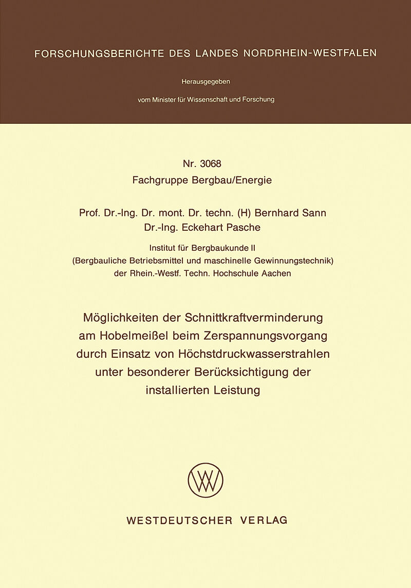 Inhalt 1. Einsatz der HDW-Technik im Bergbau.- 2. Der Abtrennvorgang Stand der Technik.- 3. Ziel des Forschungsvorhabens.- 4. Die Erzeugung von Schlitzen im Gestein durch den HDW.- 4.1 Der Prüfstand zur Schneiduntersuchung.- 4.2 Das Versuchsmaterial.- 4.3 Qual...