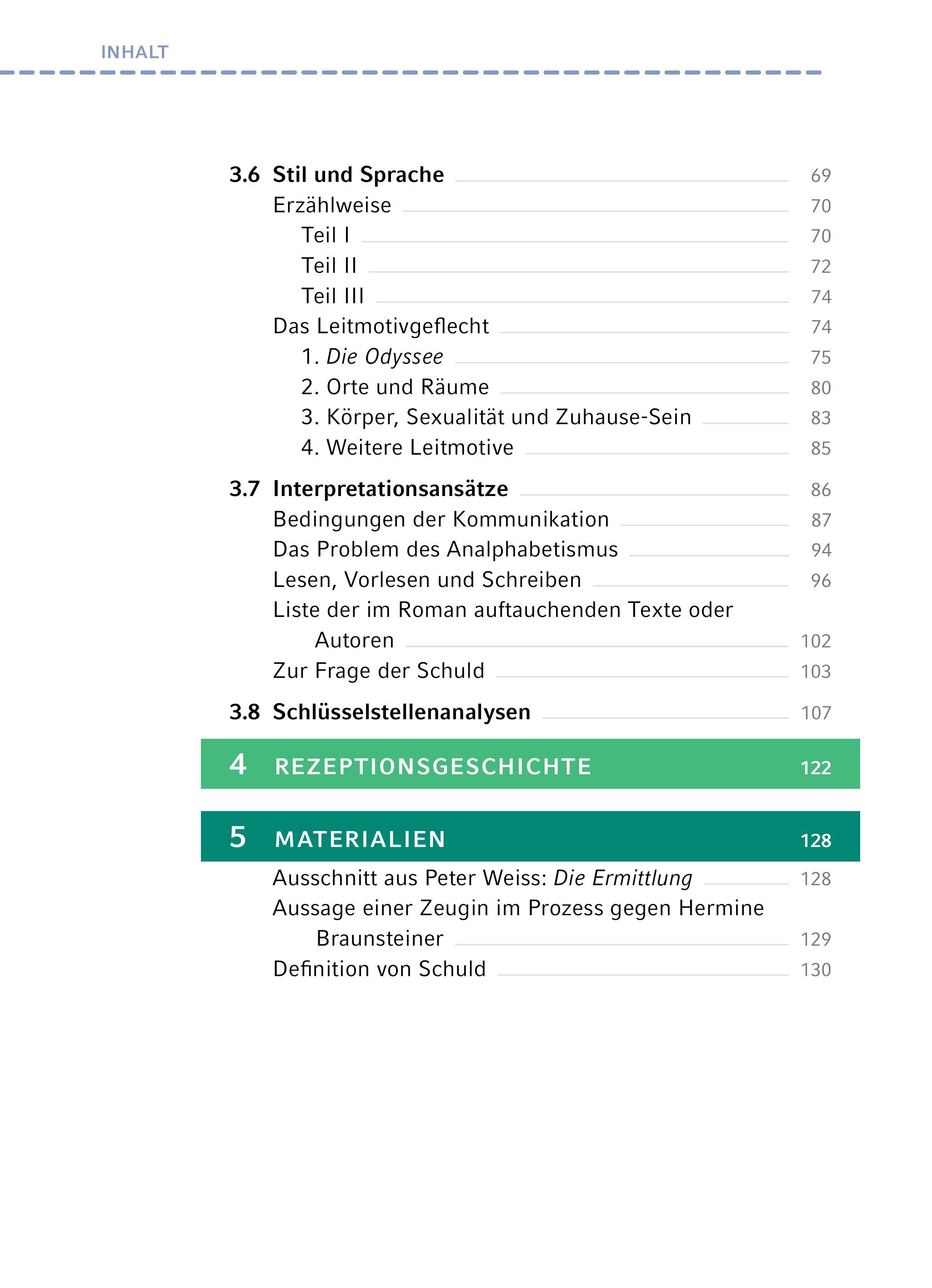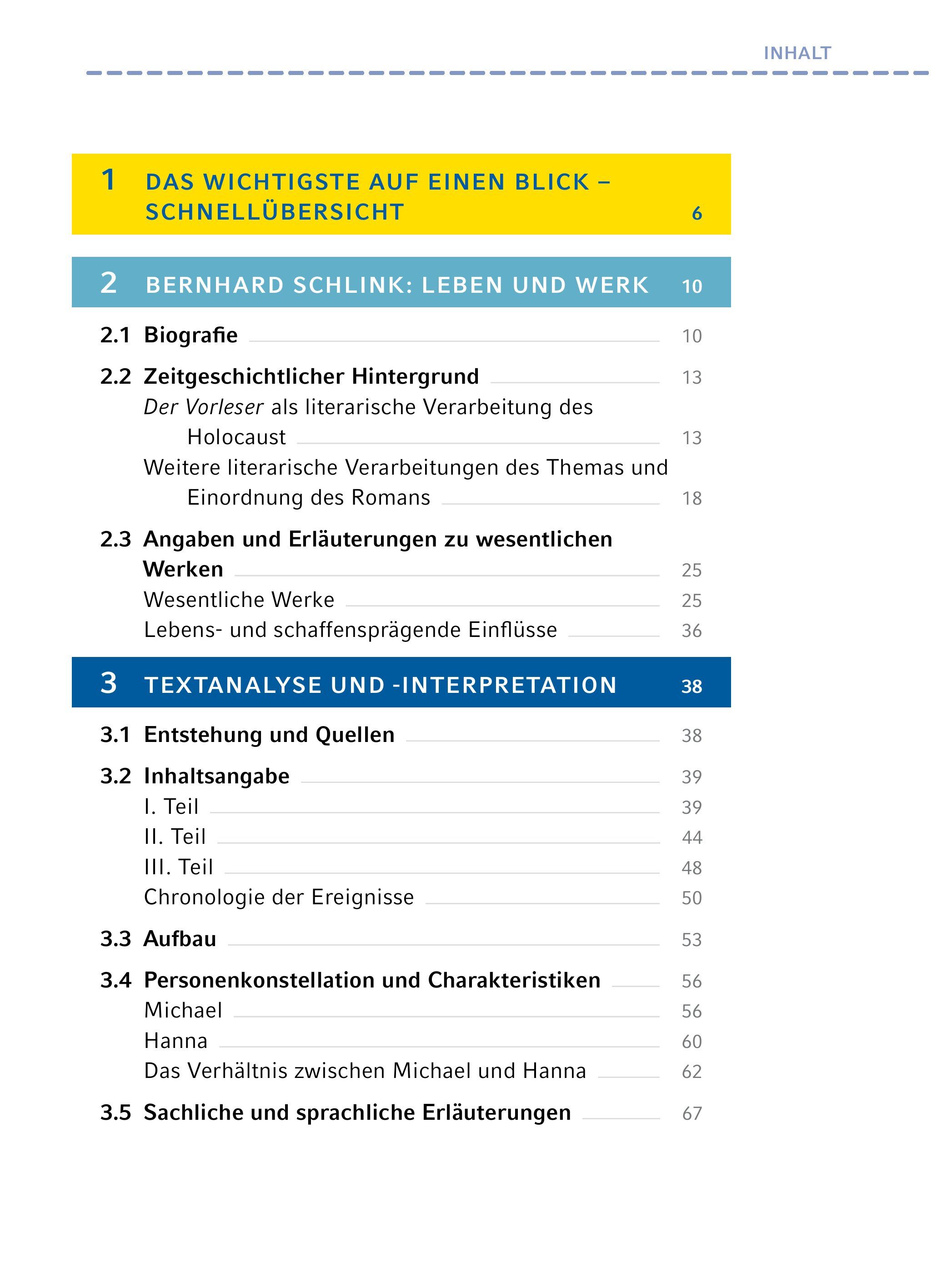 Spare Zeit und verzichte auf lästige Recherche! In diesem Band von Schlink, Der Vorleser findest du alles, was du zur Vorbereitung auf Referat, Klausur, Abitur oder Matura benötigst ohne das Buch komplett gelesen zu haben. Alle wichtigen Infos zur Interpretat...
