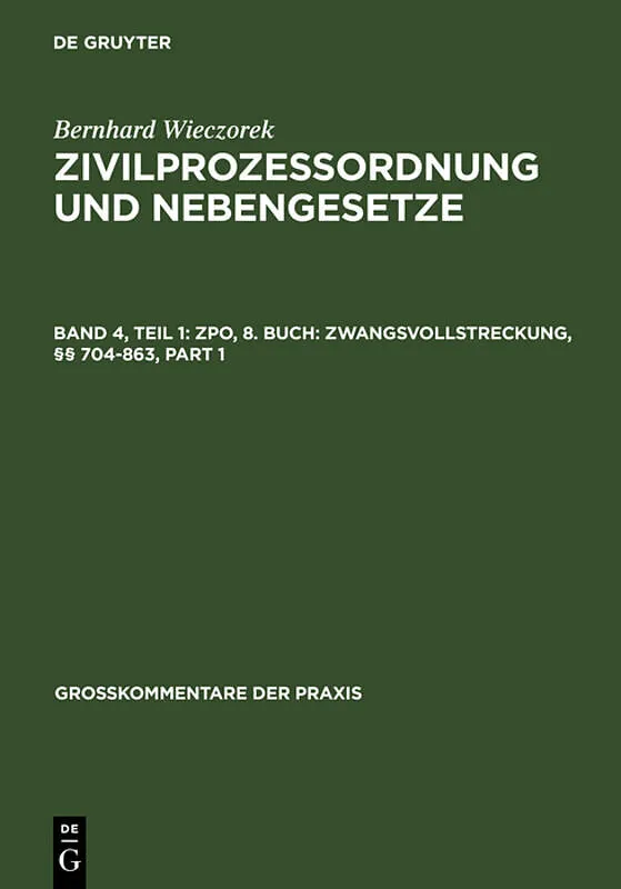 Keine ausführliche Beschreibung für "ZPO, 8. Buch: Zwangsvollstreckung, 704-863" verfügbar. Frontmatter -- Inhaltsverzeichnis -- Achtes Buch Zwangsvollstreckung -- Erster Abschnitt Allgemeine Vorschriften (§§ 704-802) -- § 704 -- § 765 -- Zweiter Abs...