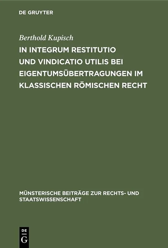 Keine ausführliche Beschreibung für "In integrum restitutio und vindicatio utilis bei Eigentumsübertragungen im klassischen römischen Recht" verfügbar. Frontmatter -- VORWORT -- INHALT -- ABKÜRZUNGEN -- EINLEITUNG -- Erste Kapitel: Restituere actione...