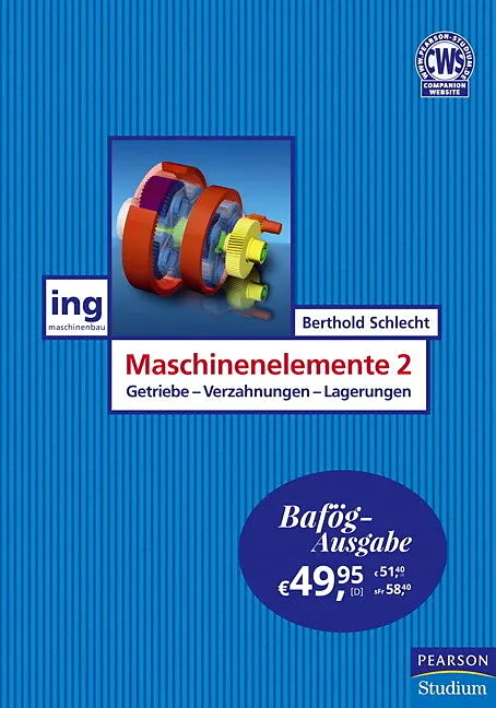 Maschinenelemente 2 - jetzt in der günstigen "Bafög"-Ausgabe - bietet ergänzend zu Maschinenelemente 1 (ISBN 978-3-8273-7145-4) den zweiten Teil der klassischen Maschinenelemente in 9 Kapiteln, wie sie zurzeit an Universitäten und Fachhochschulen unterrichtet werden. Wie die Mathematik und Mechanik gehören die Maschinenelemente zum grundlegenden Rüstzeug des modernen Ingenieurs in allen Fachdisziplinen. Im ersten Drittel des Buches werden Gleitlager, Wälzlager und Dichtungen behandelt. Im Hauptteil des Buches werden ausführlich allgemeine Antriebssysteme, Stirnradverzahnungen und Stirnradgetriebe sowie darauf aufbauend Umlaufrädergetriebe, Kegelradverzahnungen und Schneckenverzahnungen mit den jeweils zugehörigen Getrieben vorgestellt. Den Abschluss bilden die Hüllgetriebe in Riemen-, Ketten- und Zahnriemenausführung. Zweifarbige Abbildungen, darunter vollständige Baugruppen ausgeführter Maschinen und Anlagen, sowie zahlreiche Tabellen illustrieren und vertiefen den Stoff. Ein didaktisch ausgefeiltes Layout mit Lernzielen und Kapitelzusammenfassung unterstützt das Lehren und Lernen. Jedem Kapitel sind auf der Companion Website zum Buch Übungsfragen und Lösungen zugeordnet. Zum Buch ist ein Zugang zur zeitlich unbefristeten Version von MDESIGN LVR und MDESIGN LVR planet als "Pearson Edition" enthalten. Diese ist hinsichtlich der Druckfunktion und der auswählbaren Flankenmodifikationen beschränkt. Auf der CD im Buch enthalten, ist eine Demoversion der Berechnungssoftware KISSsoft, die der Auslegung und Berechnung von Maschinenelementen wie Zahnrädern, Wellen, Lagern und anderen dient. Das von der Firma KISSsoft AG hergestellte Programm hat sich in Deutschland speziell im Getriebebau als Standard-Software etabliert. Über den ebenfalls dem Buch beiliegenden Registrierschlüssel kann eine aktuelle Spezial-Version von KISSsoft aus dem Internet bezogen und aktiviert werden. Dabei handelt es sich um ein erweitertes Grundpaket mit 300 Tagen Laufzeit.