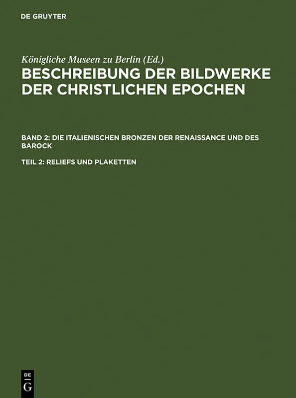I-IV -- VORWORT -- INHALTSVERZEICHNIS -- I. Reliefs der Renaissance und des Barocks -- II. Plaketten -- III. Register -- Tafel 1 -- Tafel 50