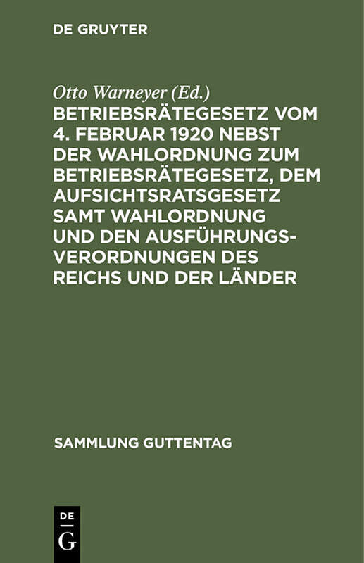 Keine ausführliche Beschreibung für "Betriebsrätegesetz vom 4. Februar 1920 nebst der Wahlordnung zum Betriebsrätegesetz, dem Aufsichtsratsgesetz samt Wahlordnung und den Ausführungsverordnungen des Reichs und der Länder" verfügbar. Frontmatter -- Ei...