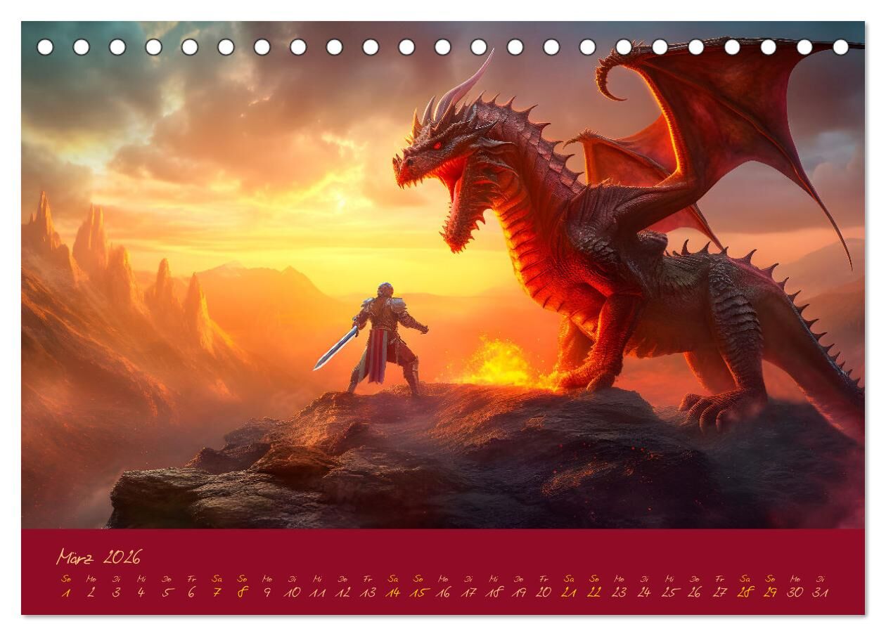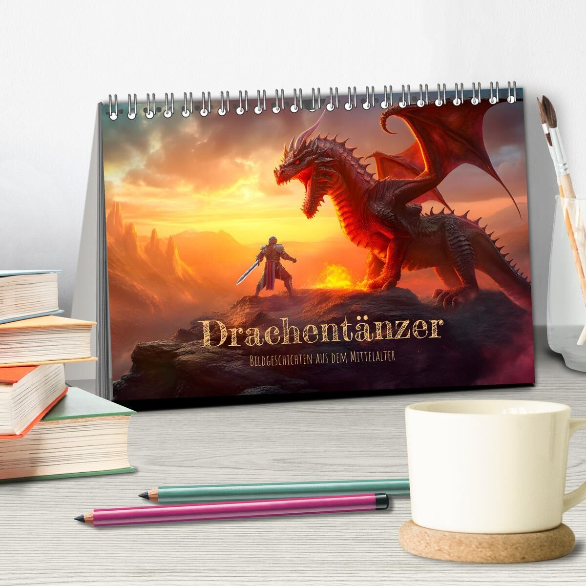 Drachentänzer - Bildgeschichten aus dem Mittelalter (Tischkalender 2026 DIN A5 quer), CALVENDO Monatskalender