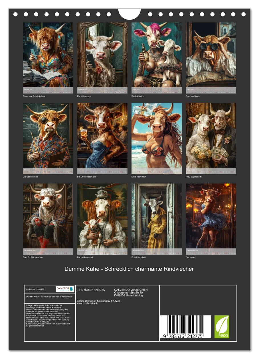 Entdecken Sie den ultimativen Kalender für ein Jahr voller Lacher! Unser "Dumme Kuh"-Kalender präsentiert jeden Monat eine neue, Anti-Queen, die garantiert zum Schmunzeln bringt. Von der übertriebenen Asi-Mutter bis zur selbstbewussten Influencerin, die vor je...