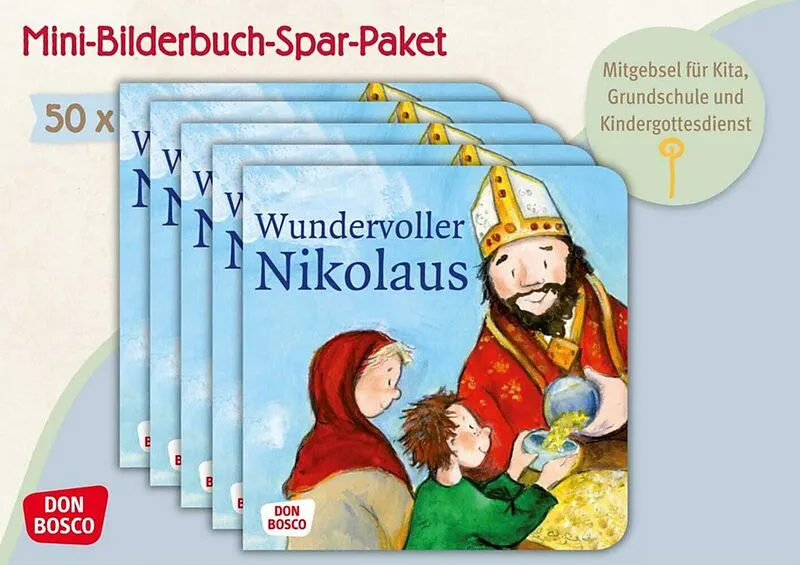Eine große Hungersnot herrscht im Land. Bischof Nikolaus bittet Gott um Hilfe und tatsächlich geschieht etwas Wunderbares ... 50 Mini-Bilderbücher zum Verteilen in Kindergruppen. Vorteilspreis! Die Nikolauslegende für Kinder: das Mini-Bilderbuch als Vorteilspa...