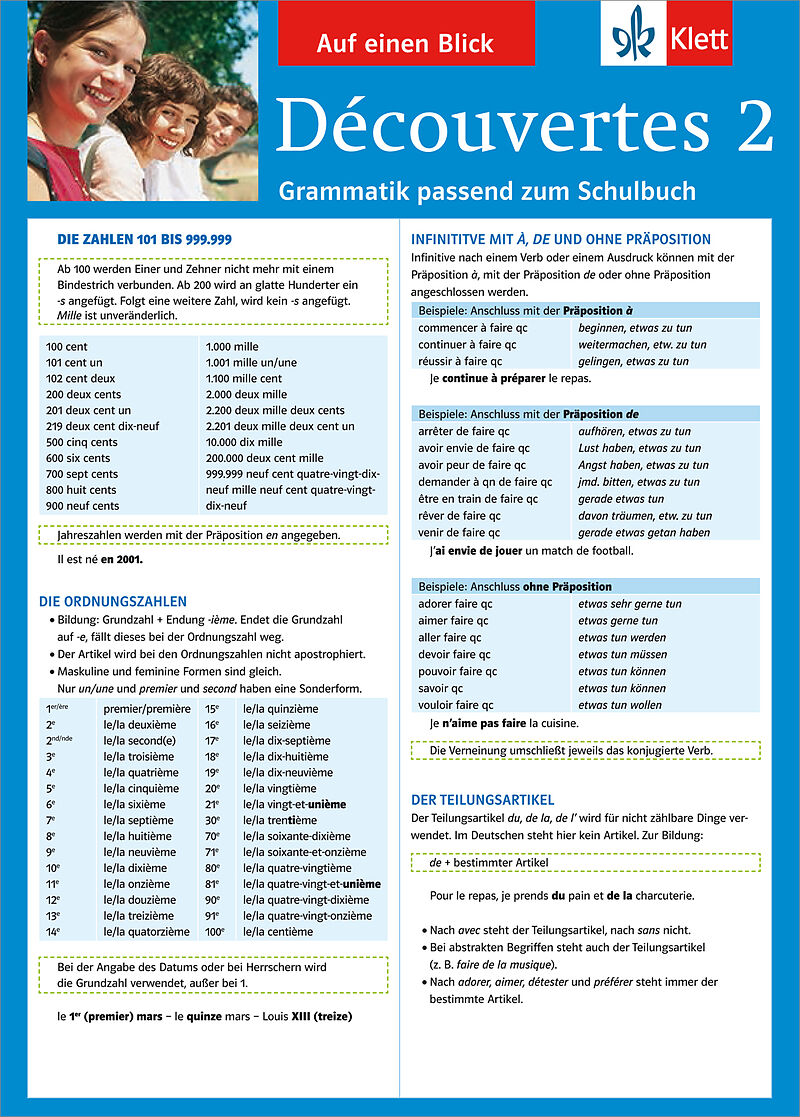 Grammatik auf einen Blick - passend zum Schulbuch Passt zum Schulbuch: Découvertes 2, Französisch 2. Lernjahr, ISBN: 978-3-12-523821-3 Ideal für die Schule, für zu Hause und unterwegs. Mit abwaschbarer strapazierfähiger Laminierung. Praktisch: mit seitlicher ...