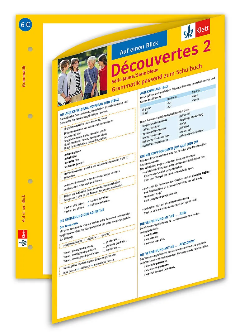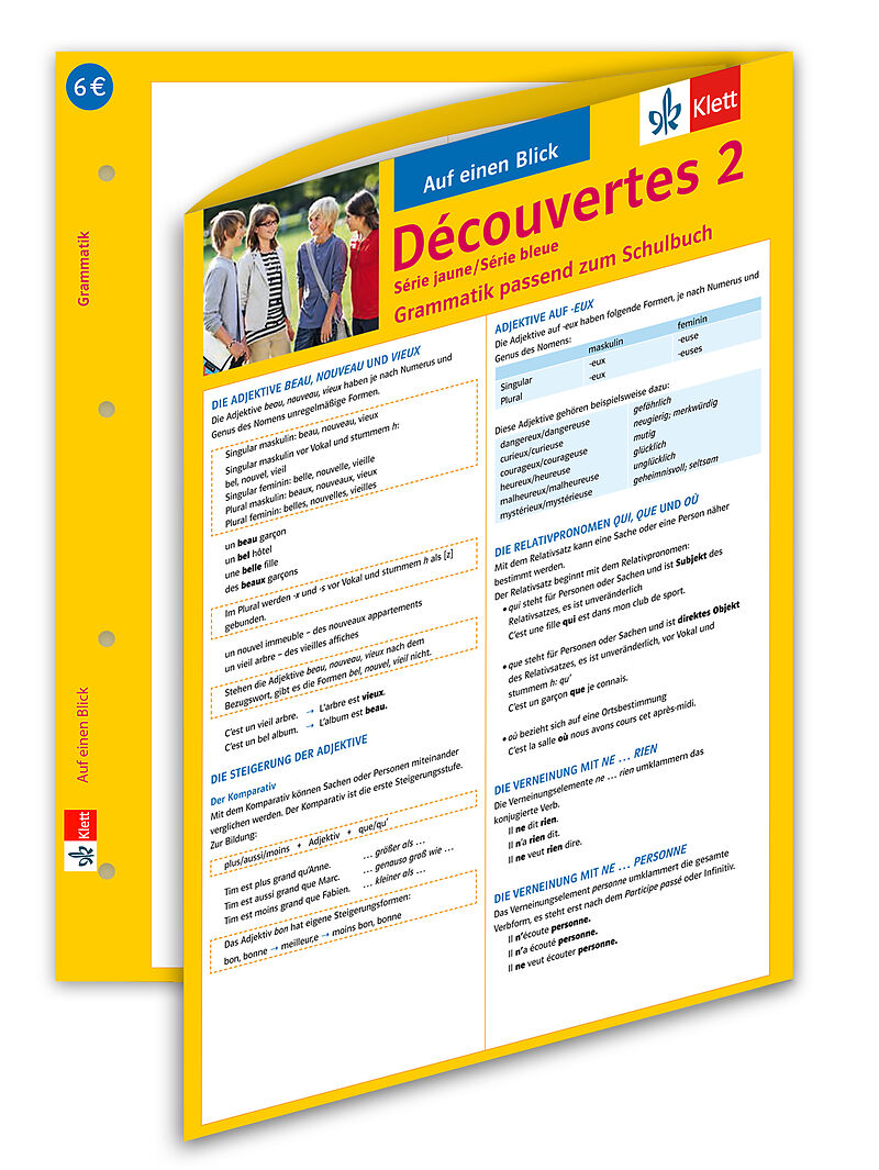 Französisch-Grammatik auf einen Blick - passend zum Schulbuch Passt zu den Schulbüchern Découvertes Série bleue 2 ISBN: 978-3-12-622121-4 und ISBN: 978-3-12-622022-4 (fester Einband) ISBN: 978-3-12-622021-7 (flexibler Einband) Grammatik eines Schuljahres pass...