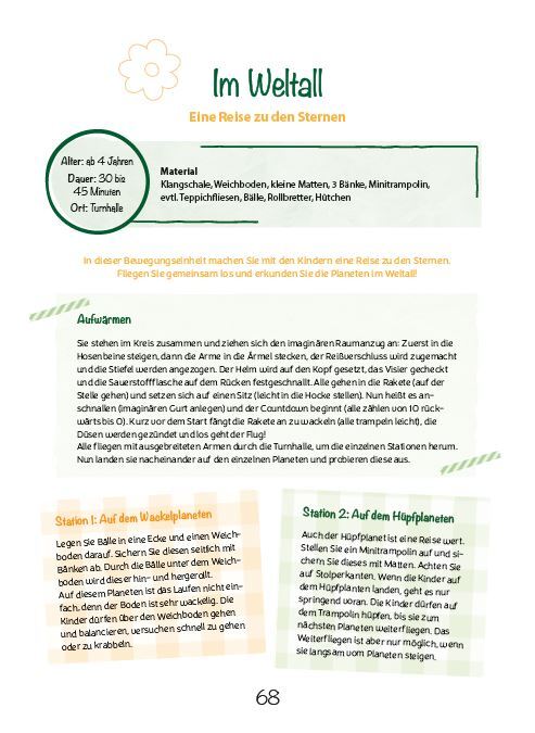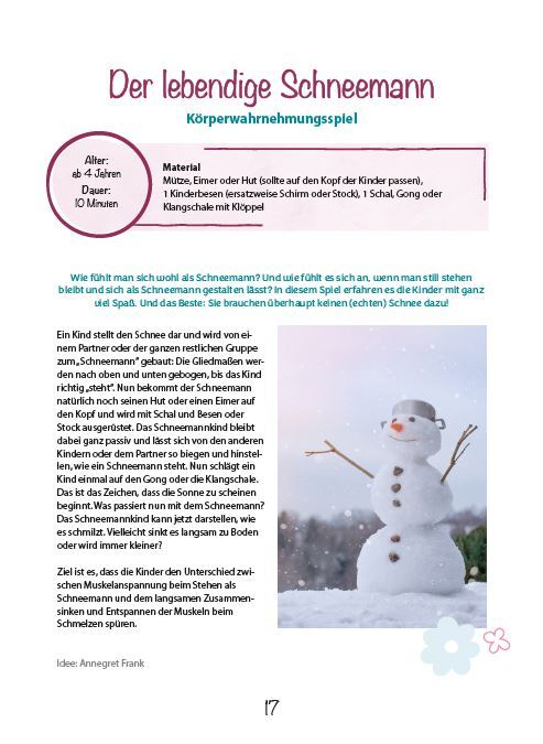 Ob bei einer Sommerolympiade, als lebendiger Schneemann, bei einer Reise ins Weltall oder tiefenentspannt beim lustigen Tieryoga: Mit den Bewegungsspielen, Mitmachgeschichten, Ideen zum Hüpfen, Rennen und Tanzen in diesem Praxisbuch erleben die Kinder Bewegung...