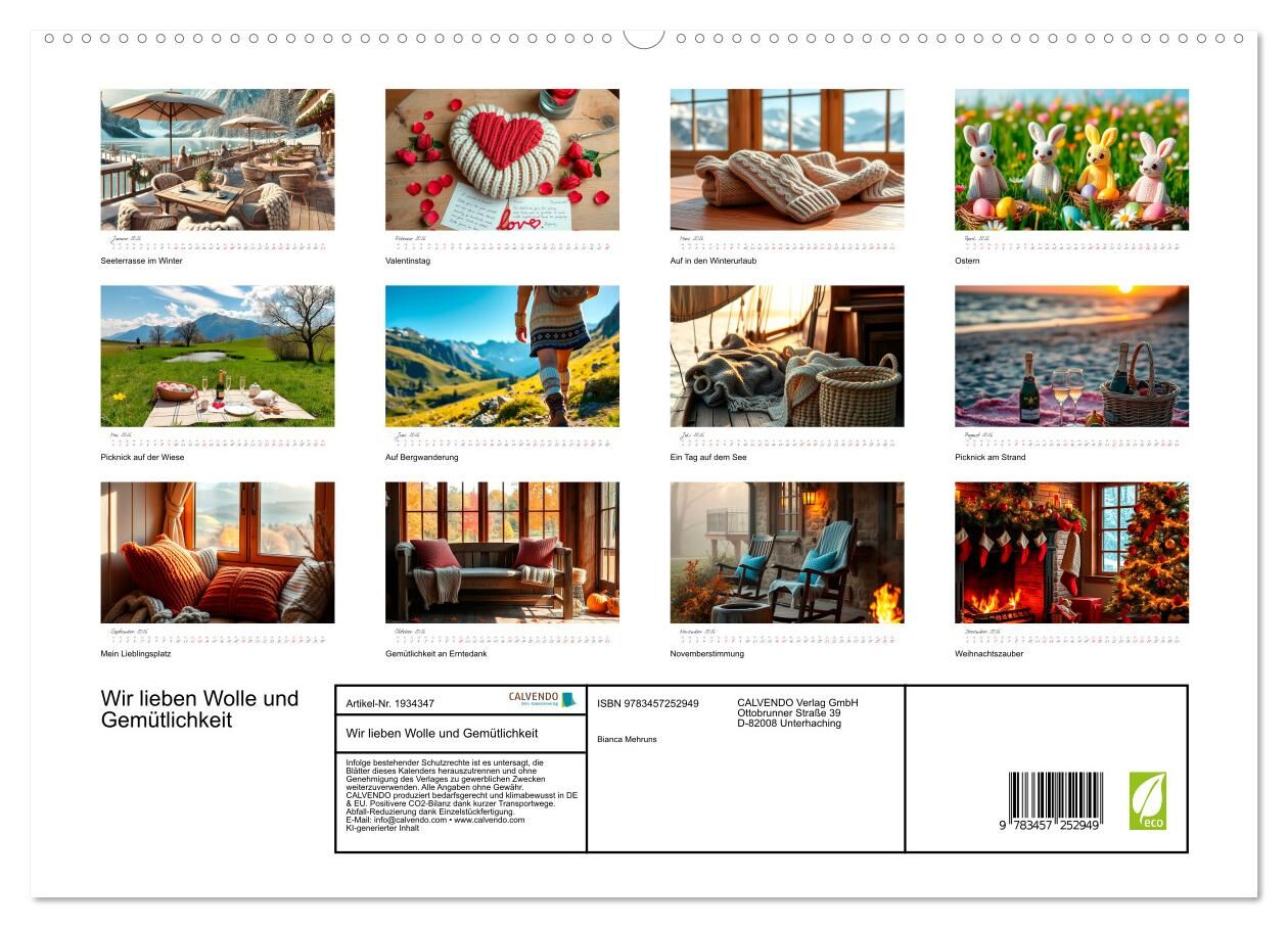 Dein perfekter Begleiter für ein Jahr voller Wärme und Gemütlichkeit! Lass dich Monat für Monat von liebevoll gestalteten KI-Bildern mit dem Wohlfühl-Thema Wolle verzaubern. Herbstinspiration: Warme Decken und Kissen laden auf einem gemütlichen Sitzplatz zum V...