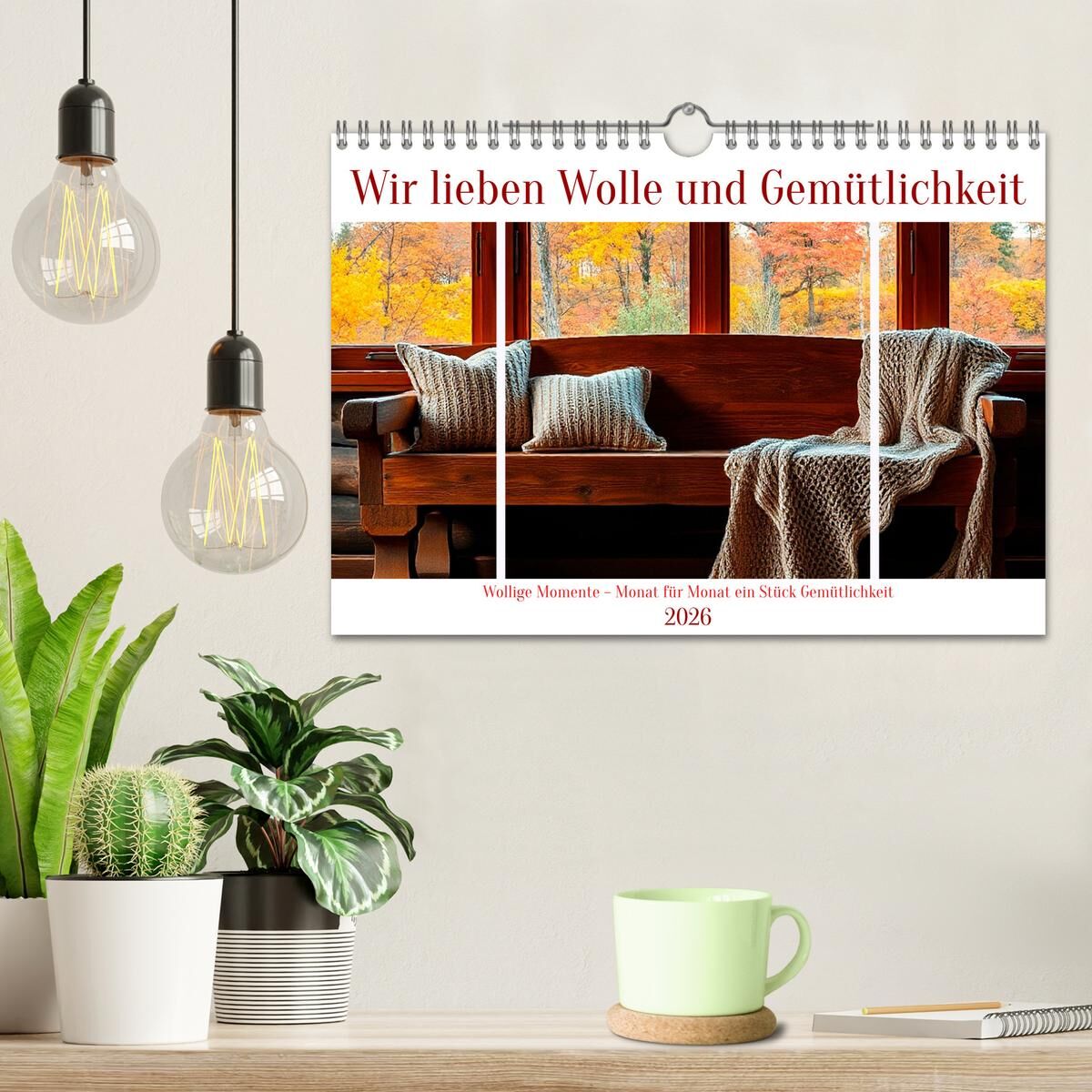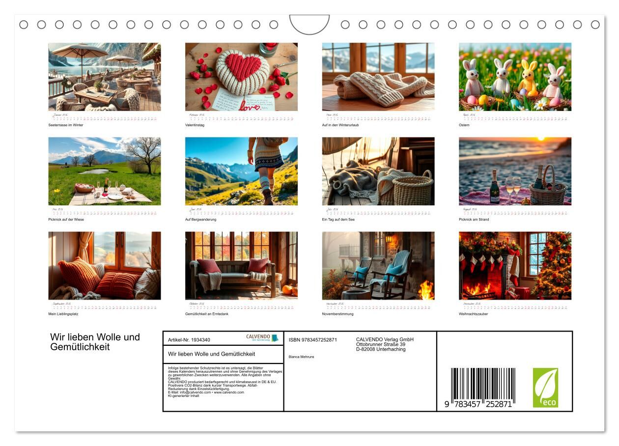 Dein perfekter Begleiter für ein Jahr voller Wärme und Gemütlichkeit! Lass dich Monat für Monat von liebevoll gestalteten KI-Bildern mit dem Wohlfühl-Thema Wolle verzaubern. Herbstinspiration: Warme Decken und Kissen laden auf einem gemütlichen Sitzplatz zum V...