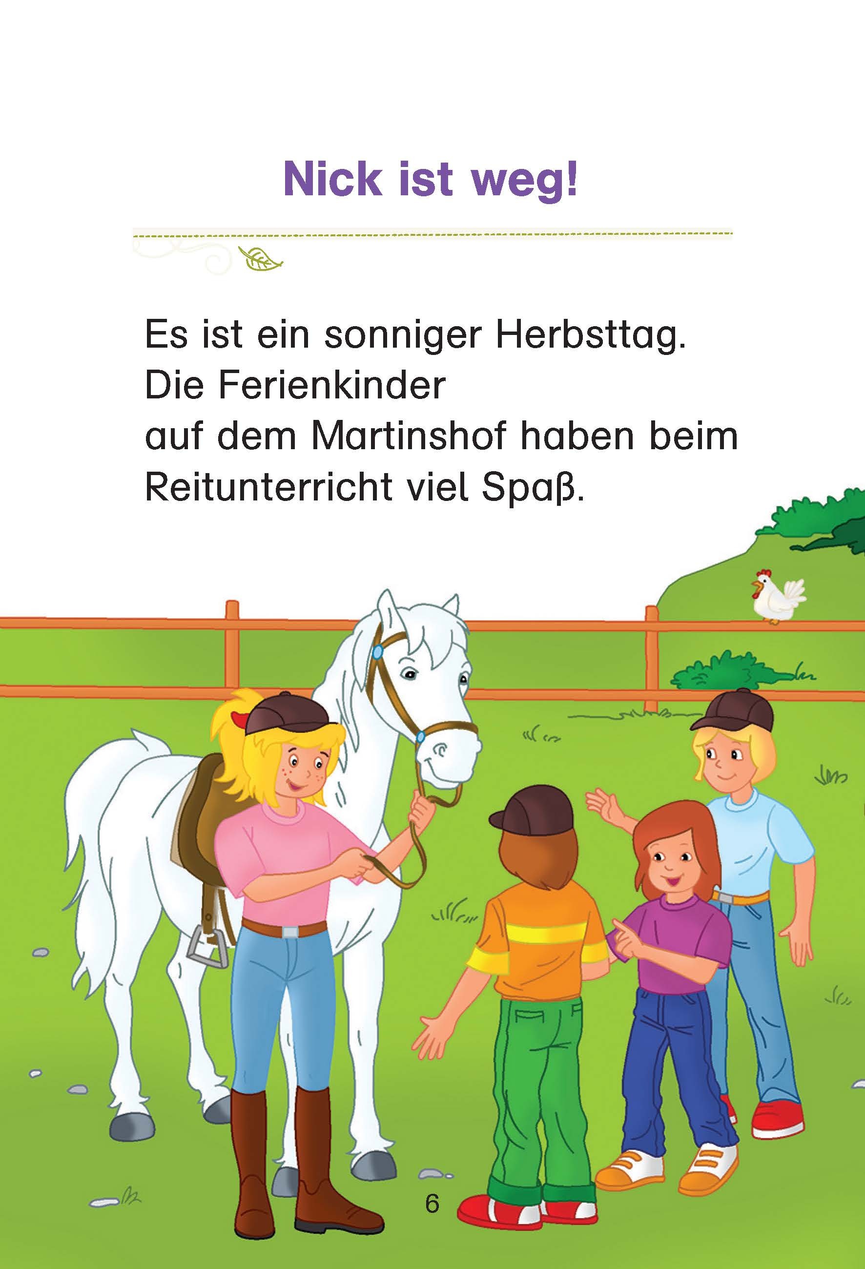Lesen lernen mit Bibi und Tina! Fine hat viel Spaß auf dem Martinshof: Sie findet Pferde einfach toll! Doch ihr Bruder Nick mag Fußball viel lieber und langweilt sich. Eines Tages verschwindet Nick. Bibi, Tina und die kleine Fine suchen ihn überall. Sie müsse...