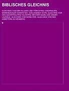 Klappentext Quelle: Wikipedia. Seiten: 21. Kapitel: Gleichnis von den klugen und törichten Jungfrauen, Barmherziger Samariter, Verlorener Sohn, Gleichnis von den anvertrauten Talenten, Reicher Mann und armer Lazarus, Gleichnis vom Nadelöhr, Gleichnis von den A...