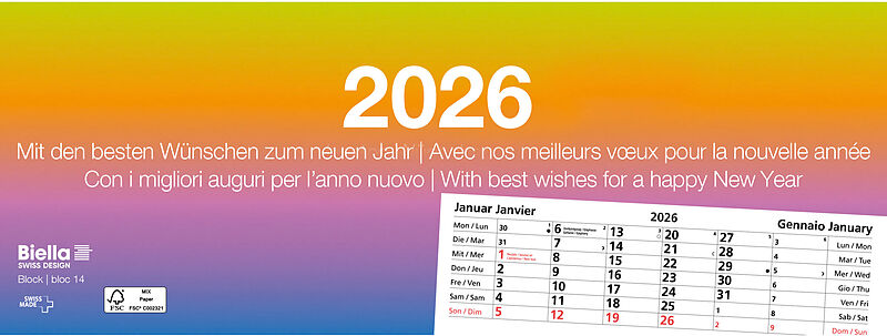Wand-/Abreisskalender hoch Der Biella Abreissblock mit 1 Tag pro Seite, zum Aufstellen oder Aufhängen, bietet Ihnen unauffällig den täglichen Überblick. 1 Monat / 1 Seite 24 x 9 cm Auf- und absteigende Tagesnummerierung Sonnenauf- und untergang Namenstage...
