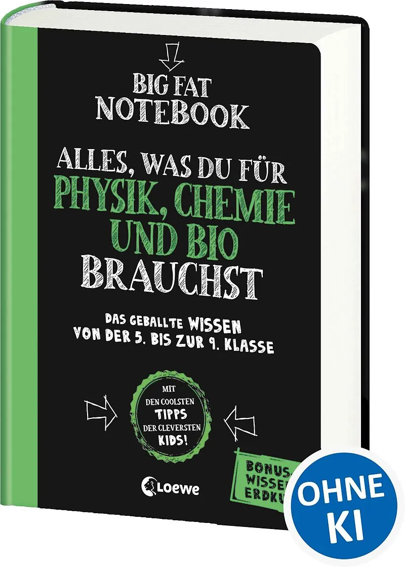 Loewe-Bücher: garantiert ohne KI Keine Lust auf naturwissenschaftliche Fächer? Damit ist jetzt Schluss. So bekommst Du den Schulstoff von der 5. bis zur 9. Klasse in den Griff! Für bessere Noten! Erfahre alles über ... ... die Erde und unser Sonnensystem ... wissenschaftliches Forschen ... Newtons Gesetze der Mechanik ... die Elemente ... Energie ... Klima ... Zelltheorie ... den menschlichen Körper ... Ökosysteme und vieles mehr. Mit Definitionen, Lerntipps, Übungsseiten, Lösungen und Doodles Umfassendes Nachschlagewerk und Übungsbuch in den Fächern Physik, Chemie, Biologie und Erdkunde für Schüler*innen von der 5. bis zur 9. Klasse. Optimal geeignet zur Vertiefung und Auffrischung schulischer Inhalte und zur Vorbereitung auf schulische Tests. Die ungewöhnliche Gestaltung mit Scribbles und Cartoons sowie witzige Kommentare sorgen für Auflockerung. Nach jedem Kapitel folgt ein Wissensquiz, Multiple-Choice-Test oder ein Lückentext zur Lernkontrolle.