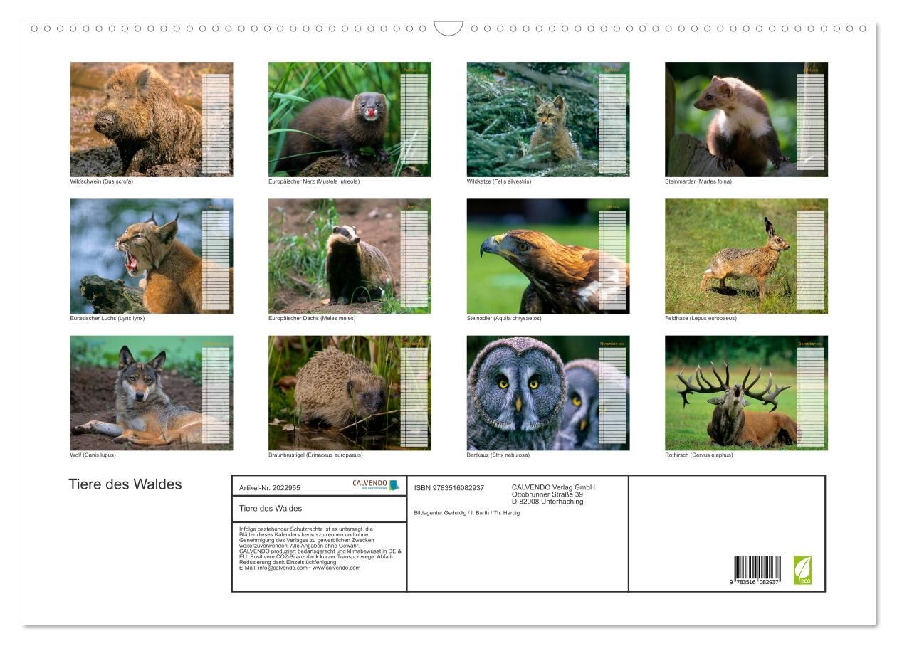 Wilde Tiere in freier Wildbahn. Der Kalender für alle Tierfreunde und Naturliebhaber. 13 farbenfrohe Motive mit wilden Tieren aus europäischen Ländern.