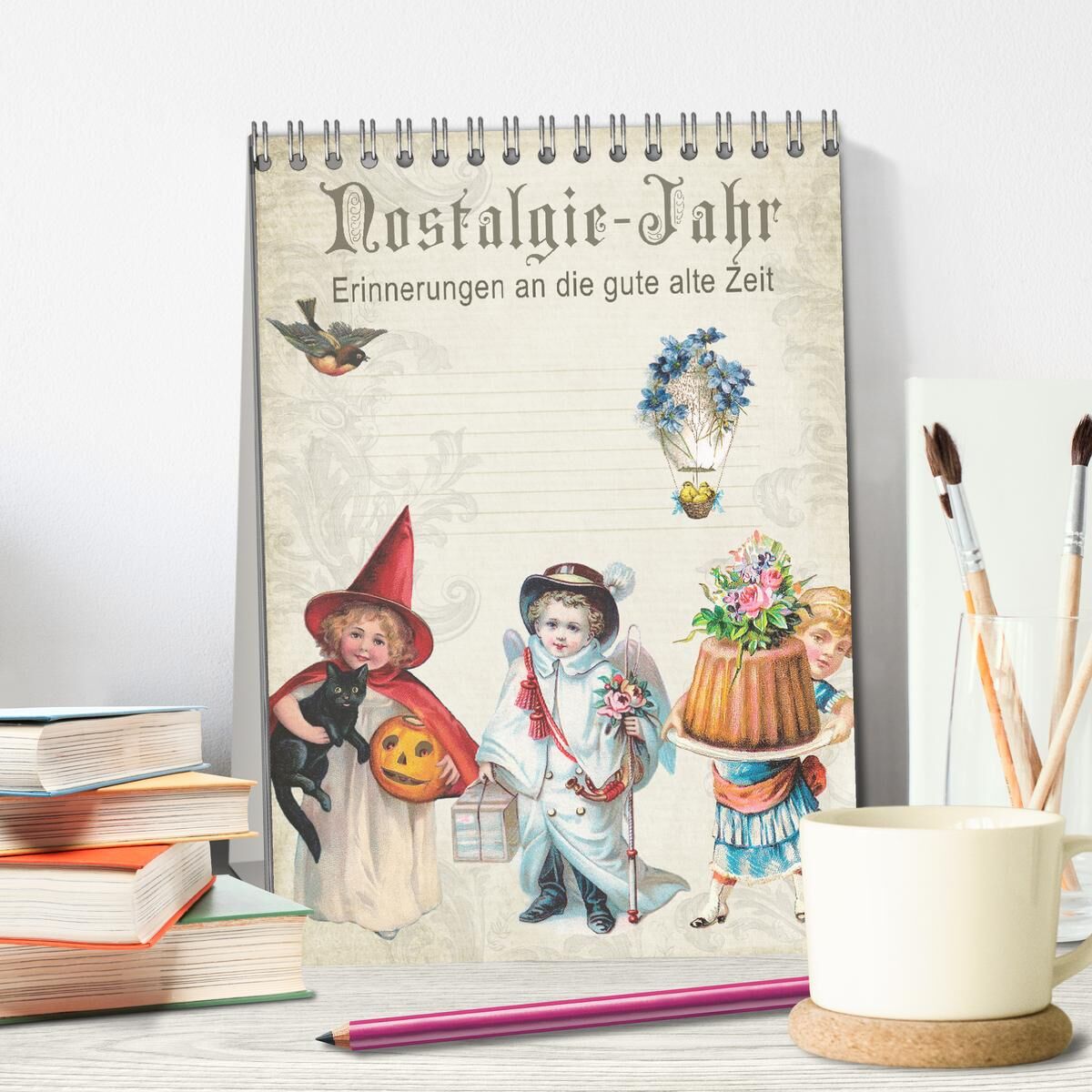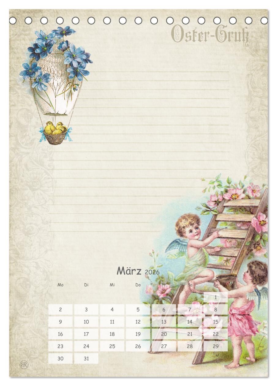 Nostalgie-Jahr, Motive aus alten Poesiealben (Tischkalender 2026 DIN A5 hoch), CALVENDO Monatskalender