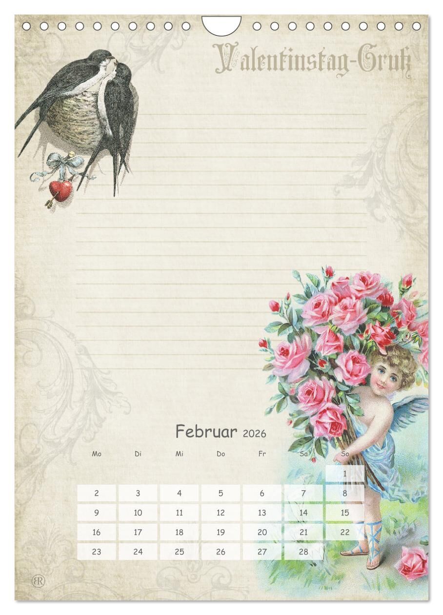 Nostalgie-Jahr, Motive aus alten Poesiealben (Wandkalender 2026 DIN A4 hoch), CALVENDO Monatskalender