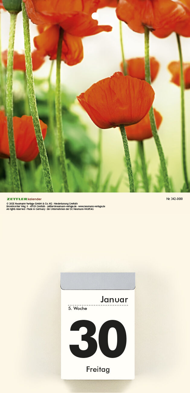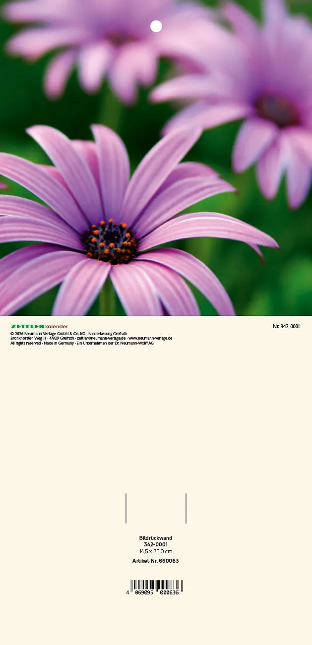 Die Zettler Bildrückwände 2026 mit farbenfrohen Blumenmotiven bringen dekorativen Charme in Ihren Alltag und ergänzen Ihre Tagesabreißkalender perfekt ideal für Küche, Büro oder Wohnbereich. Highlights Bildrückwände Typ 301/302 mit abwechslungsreichen Blumenm...