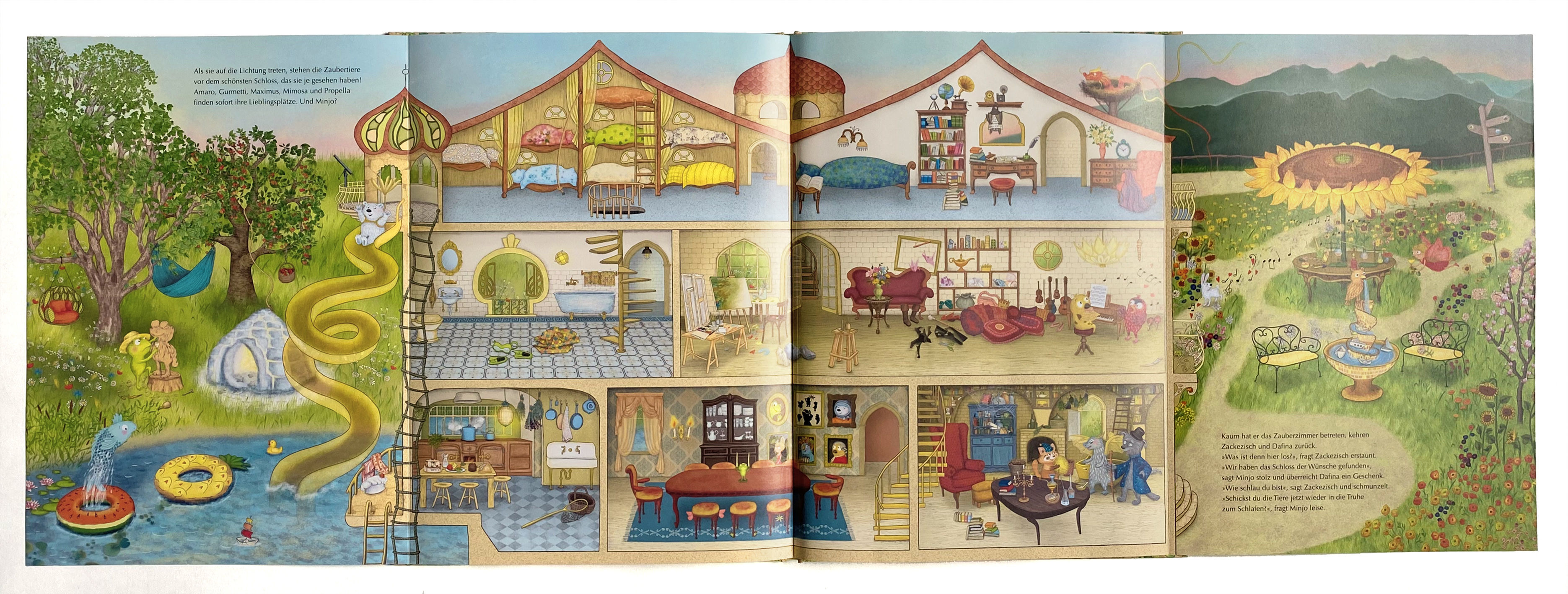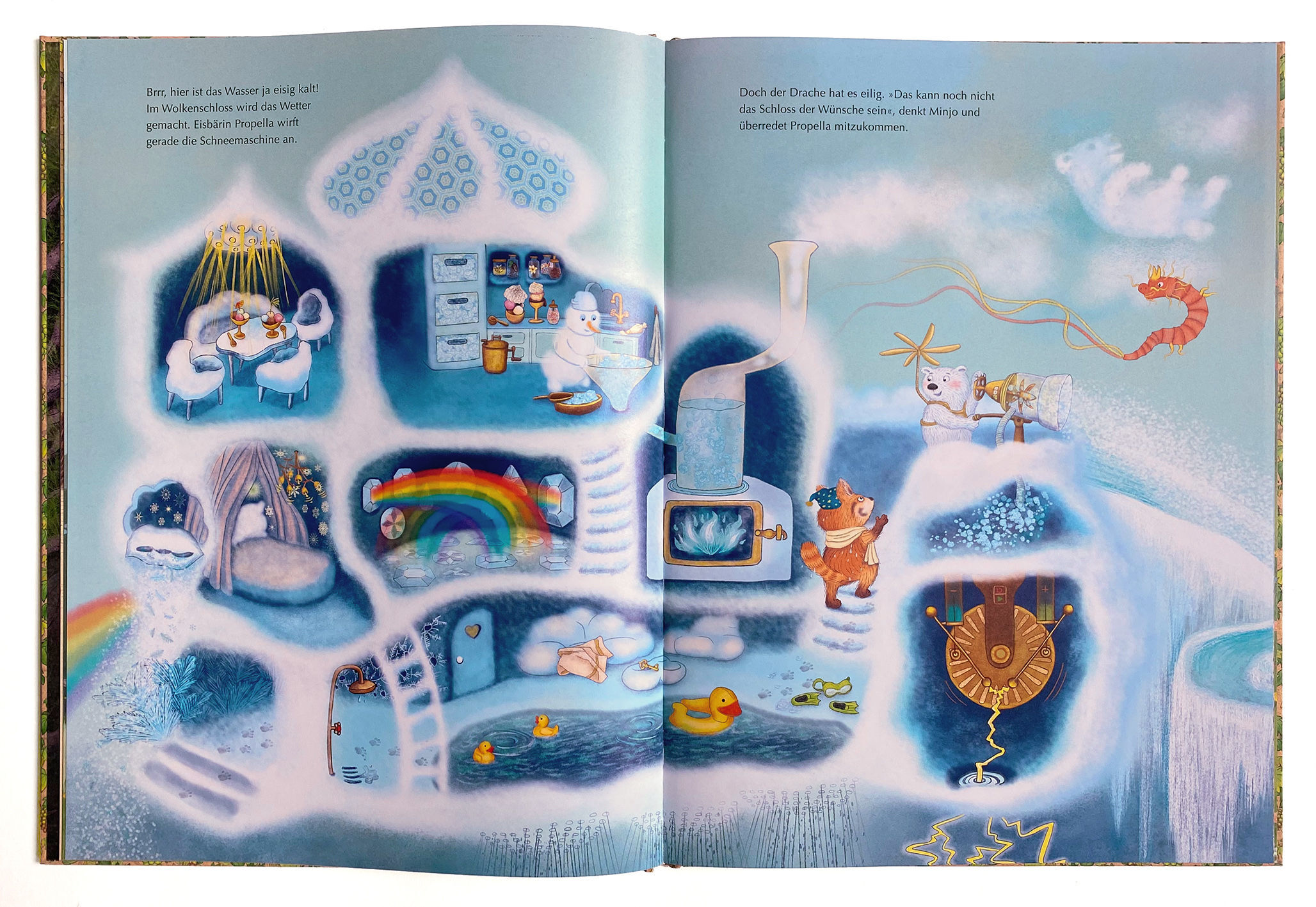 Eine abenteuerliche Reise durch fantastische Bauten Zauberlehrling Minjo und seine Freunde sind auf der Suche nach dem Schloss der Wünsche. Doch wie sieht dieser geheimnisvolle Ort aus? Für Eisbärin Propella kann es nur ein eisiges Wolkenschloss sein, für Schm...